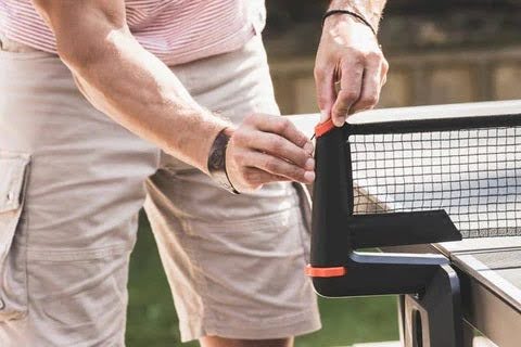 Unfold the 700X ping pong table and it's immediately ready for play. The net posts move into position automatically when you unfold the table. Select the right height for your game using the dial at the base of the net, and then adjust the tension simply by pulling the string and blocking it with the clasp. Voila! Your net is perfectly adjusted, and you're all set to play.